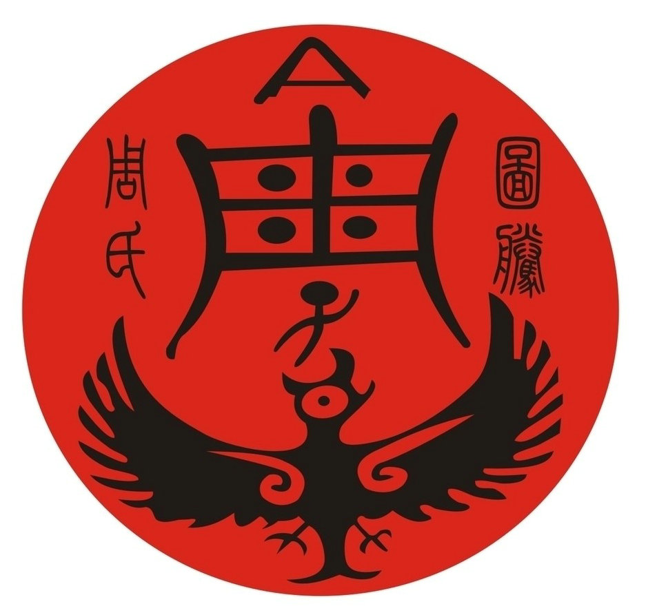 周姓图腾是“鸟”和“田粟”的合文,由四个部分组成:下为救护后稷的“金鸟”;中为匍匐的“孩童”即“人”;中上为“田粟”,亦称为“鼎”;上为“岐山”。其含意是:由大鸟保护的周人,经田粟与城郭扛鼎登山,直上苍天拜谒圣祖,以此向各氏族部落宣告周姓是祭天之氏、天子之族。
