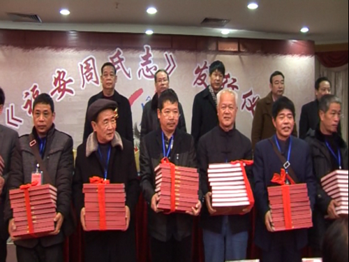 首先,向各位宗亲通报一个最先的信息:一、世界中华总会送来贺信,热烈祝贺《福安周氏志》发行仪式隆重召开;二、福安市政府周氏领导宗亲、福鼎市祠堂、宁德市八都金垂祠堂、宁德赤溪夏村祠堂、各位周氏宗亲纷纷喜捐达到八万元,福安市周氏联谊会领导班子给各位嘉宾、宗亲发行了《福安周氏志》及纪念品。