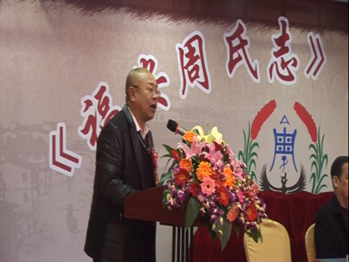 其次,省会副会长周钱福代表闽东姓氏源流研究会和周氏联谊会在会上宣读贺词;福安市联谊会名誉会长周泽钦作关于《福安周氏志》编撰过程的重要讲话;省会常务副会长周玉瑞代表省会作指导性方面重要讲话;周霖名誉会长代表福安周氏宗亲代表讲话;福安市方志委梁主任作关于编写地方谱志的指导性、政策性、民族性的重要讲话;福安市联谊会会长作总结和表态今后福安市要做两个内容:第一建立教育基金会,培养周氏人才;第二个建造福安市周氏宗亲祠堂。