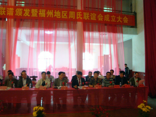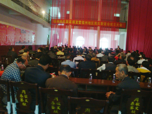 2015年4月26日上午,《福州周氏联谱》编委会全体成员与来自福州地区各县市区和福建省各地区代表百余人欢聚在长乐市人杰地灵的金峰镇港口村礼堂,共同庆祝《福州周氏联谱》颁发暨福州地区周氏联谊会成立大会。