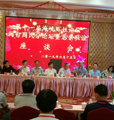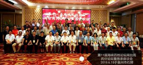 初夏时节,万紫千红。6月15日下午,第十一届海峡百姓论坛闽台周氏分论坛暨恳亲联谊座谈会在石狮市豪富华酒店举行。来自闽台两地的宗亲代表70多人聚首石狮,畅叙同胞亲情,传承中华周氏文化,共促和平发展.