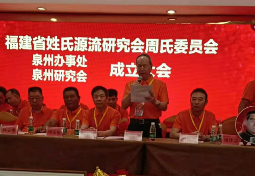 大会首先由“闽周会”常务副会长周玉瑞宣读《福建省姓氏源流研究会周氏委员会关于设立泉州办事处的批复》。