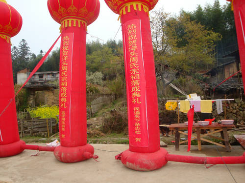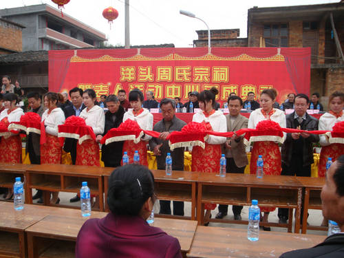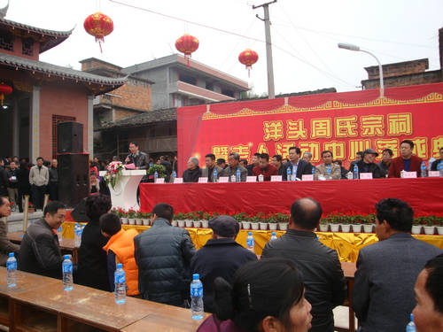 2011年3月26日(农历二月二十二)上午,洋头村披上了节日的盛装,洋头周氏举行隆重的宗祠重建竣工典礼。闽侯县洋里乡党委,福建省周氏源流研筹会、《中华周氏》网站、《福州市周氏联谱》编委会负责人,以及宁德市蕉城区,长乐、连江、罗源等县市宗亲代表应邀参加典礼,参加庆典的还有该村户代表共千余人。庆典大会在《周氏之歌》声中开始,首先由村主任致欢迎词,村老人会会长作祠堂重建介绍,村企业家代表讲话;接着,周玉瑞先生受到会的省周氏源流研筹会副主任周昌舜、周金宗、周野,《福州市周氏联谱》主编周伟等先生的委托,在会上致贺词;洋里乡党委徐书记在会上作了热情洋溢的讲话。最后,徐书记等有关人员为宗祠重建落成剪彩。庆典大会结束后,洋里周氏理事会以百桌酒席宴请来宾和宗亲代表。