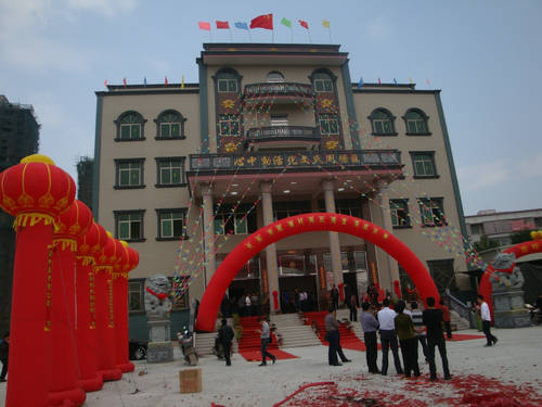 该礼堂总占地面积15多亩,总造价800多万元,全靠宗亲捐款集资,多则50万元,少的也有两三千元,历时3年建成。