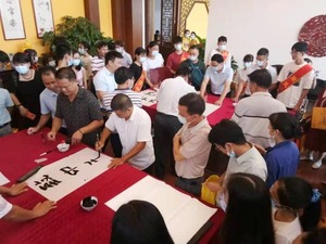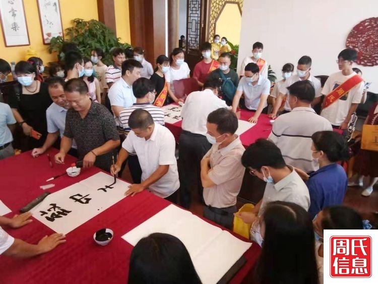 会上,由周氏书法家周长海、周剑宏、周枫、周舒娴、周天宇现场挥毫赠送会长及学子们。
