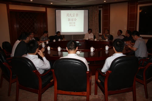 记周贤钧会长到访重庆丰都 2013年5月21日,中华周氏联谊总会会长周贤钧宗亲到访重庆市丰都县。原四川省涪陵市市长、市委书记、原重庆市涪陵区人大常务委员会副主任周浩义,重庆市涪陵区人大常委会周平、从涪陵区赶赴丰都县,共青团重庆市委、《少年先锋报社》社长周山河也从重庆市主城区赶赴丰都县,在成都的川渝周氏联谊会会长周必润从成都赶赴涪陵,拜谒周煌墓并捐款1万元,再赶赴丰都县,共同欢迎周贤钧总会长。中共丰都县委、县人大,代表县四大家接待了周贤钧总会长。 周贤钧总会长一行是5月21日下午三点钟乘自驾游艇到达重庆市丰都县名山景区旅游港口的。由于丰都与长江流域其他城市不同,建有游艇停靠码头,加之,县委常委、副县长王润侠,县旅管委副主任周林、县交委主任陈胜华,都共同安排贤钧总会长的游艇停靠港口,丰都南北港口远阳码头的老总,都很支持,使贤钧会长的游艇及时停靠到了港口,贤钧总会长觉得很感动。5月22日下午3点,贤钧总会长在重庆南滨路码头接受媒体新闻记者采访时说,昨天在丰都停靠,很方便,也很感欣慰。 丰都电视台副台长周国勇、川渝周氏联谊会副秘书长周晓、丰都森吉律师事务所律师周方勇,于21日下午2点30分,赶到丰都名山景区旅游码头迎接,并陪同总会长游览了名山风景区。贤钧总会长关切地询问了丰都历史渊源和天下名山的传说来历。陪同的宗亲都一一解说回答。在名山景区内,总会长说“我也要入乡随俗”,每到一个景点,他都到乐捐箱去捐赠。总会长对名山景区美丽的历史传说和深厚的文化底蕴饶有兴趣。 5月21日当晚,丰都县四大家和丰都周氏接待了总会长一行。晚餐之后,广东、广西、四川、重庆四个省、市、自治区的周氏宗亲代表,参加了周氏宗亲联谊会,川渝周氏联谊会副秘书长周晓主持会议。 在周氏宗亲联谊会上,首先,由重庆市涪陵区人大常务委员会人事工委的周平宗亲,介绍了清代乾隆年间工部、兵部尚书周煌的生平事迹和辉煌业绩,特别是周煌的著作《琉球国志略》深远而伟大的历史影响,对钓鱼岛、琉球国历史热点与东北亚外交、疆域国土的记录,全面系统,影响着东北亚国家治国理政的方向。 其次,是川渝周氏联谊会会长周必润介绍了周浩义的工作简历,特别是浩义宗亲对周氏文化的热心与重视十分难得;介绍了川渝地区计划分别成立周氏联谊分会,将以周煌为文化产业为突破口,编写电视连续剧《周煌》;为确保南岸区到涪陵高速公路正式通车和周煌墓地维修后,很多人将去拜谒周煌墓。为确保周煌墓基础石头不倒地面,必润会长捐款一万元,专用于重庆市涪陵区大顺乡周煌墓石的恢复原位。必润会长介绍,川渝将进一步加快进度,编写《中华周氏联谱·川渝卷》,通过联谱、联宗、联谊,继承和发扬中华周氏文化优秀遗产,实现共同发展、共同繁荣、百代昌盛。 接着,涪陵市原市长、市委书记、涪陵区原人大常务委员会副主任周浩义讲了六点意见:一是要组织人力,写《周煌传记》;二是编写电视连续剧《周煌》;三是制作内容反映质朴煌的幻灯片;四是争取文化部门和旅游部门来共同打造文化工程;期望总会和川渝分会都大力支持,在2014年周煌诞辰300周年时,举办一次大型的纪念活动。 然后,是共青团重庆市委、少年先锋报社社长周山河提了七点建议:一是要重视周氏联谊活动。通过联谊,促进海内外各族人民对中华人文始祖的认同,增强民族的文化心理归属感,并且能够建立最广泛的爱国统一战线,推进同宗团结,敬宗睦族,增进感情;由于快速推进的工业化和城市化,已经和正在瓦解中华民族的宗族人伦;我们应当敦明人伦,把民族的文化之根留住;要让周氏后人不数典忘祖,将来的子孙寻根有路、认祖归宗有文献可考,不能让后来人没有了寻根路和文献资料指引。二是要重视文化软实力建设。中华民族的繁荣昌盛,离不开每个姓氏、每个宗族和宗支的繁荣昌盛;三是经济过热已显示出了一些弊端,我们必须呼吁社会尽快投资于文化建设工程领域,确保民族的文化精神支柱永远不倒,民族的自信力和自豪感永远不衰。期望总会长投资文化建设工程项目;四是编排电视连续剧《周煌》,必须忠实于清代的历史,在忠于历史的基础上,进行文学加工;五是编写电视连续剧《周煌》,一定要有人来牵头,落实队伍,专门负责收集历史文献资料和编写脚本;六是拟定出文化建设工程电视剧《周煌》的可行性研究报告;七是中华周氏文化建设项目的所有捐款帐目,都要实行专人专管、专款专用,不得挪作他用。 最后,中华周氏联谊总会周贤钧总会长提了两个方面的要求:一是关于历史杰出人物周煌。作为一位封建社会的朝中官员,他很有爱家、爱族、爱国的热情;周煌的著作《琉球国志略》,在东北历史研究和外交史上,影响深远,现在政治敏感度高,也是个热点;至于是否拍摄电视连续剧《周煌》,需要回到中华周氏总会讨论之后再定夺;目前要特别注意保护好文物古迹;要把文物用足,才能编写连续剧;如果真要编写电视连续剧《周煌》,一定要实事求是;要作可行性研究;为支持川渝周氏开展以周煌为代表的历史先贤与杰出人物的电视连续剧,我个人先捐赠拾万元,至于总会的捐款,需要总会会议来决定。我的这笔捐款要专用于编写以周煌为代表的历史先贤的电视连续剧。要专款专用。二是关于周氏联谊会