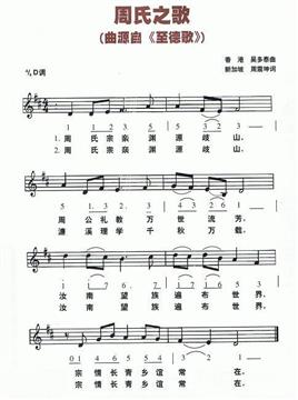 周氏之歌周氏乡亲会词曲木棉花唱周氏宗亲渊源岐秀周公礼教万世流芳莞邑望族遍布世界同宗共祖乡亲谊常在周氏故土人杰地灵国泰民安百叶繁昌千家兴旺共铸辉煌莲开百粤濂溪水绵长周氏后裔人才辈出上善若水道德文章修身齐