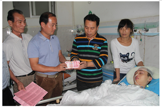 2015年10月9日晚,海南省澄迈县永发镇东兴村委会的周安腾,自己骑电动车摔伤,特重型颅脑损伤,当天晚上在海南省农垦总医院接受了右边头骨打开取淤血手术,右大脑由于受伤严重,切除部分。动完手术26天后,